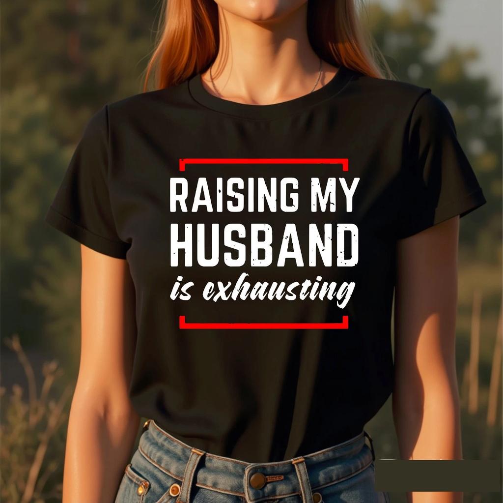 Raising My Husband Is Exhausting T-Shirt, Funny Novelty Wife Joke Unisex Tee