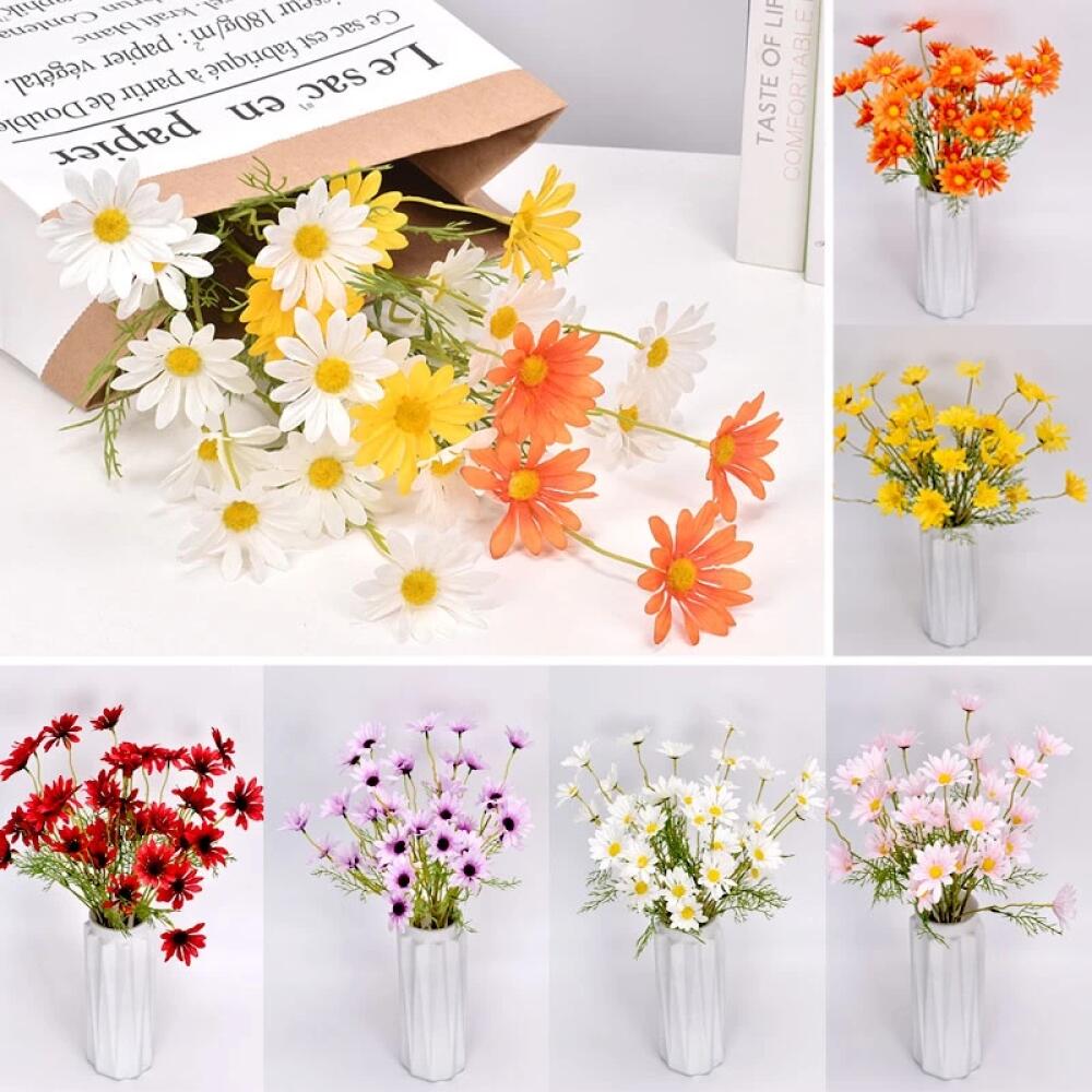 5 Heads Artificial Daisy Flower, Realistic Faux Floral Design, For Living Room Bedroom Tabletop Home Decoration, Decor Supplies