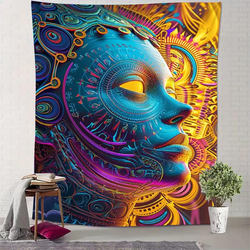 Colorful Totem Mask Digital printing polyester wall tapestry suitable for use in living rooms bedrooms offices bars party
