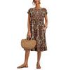 Fashionable Women's Loose Fitting Cotton And Linen Round Neck Printed Summer Dress