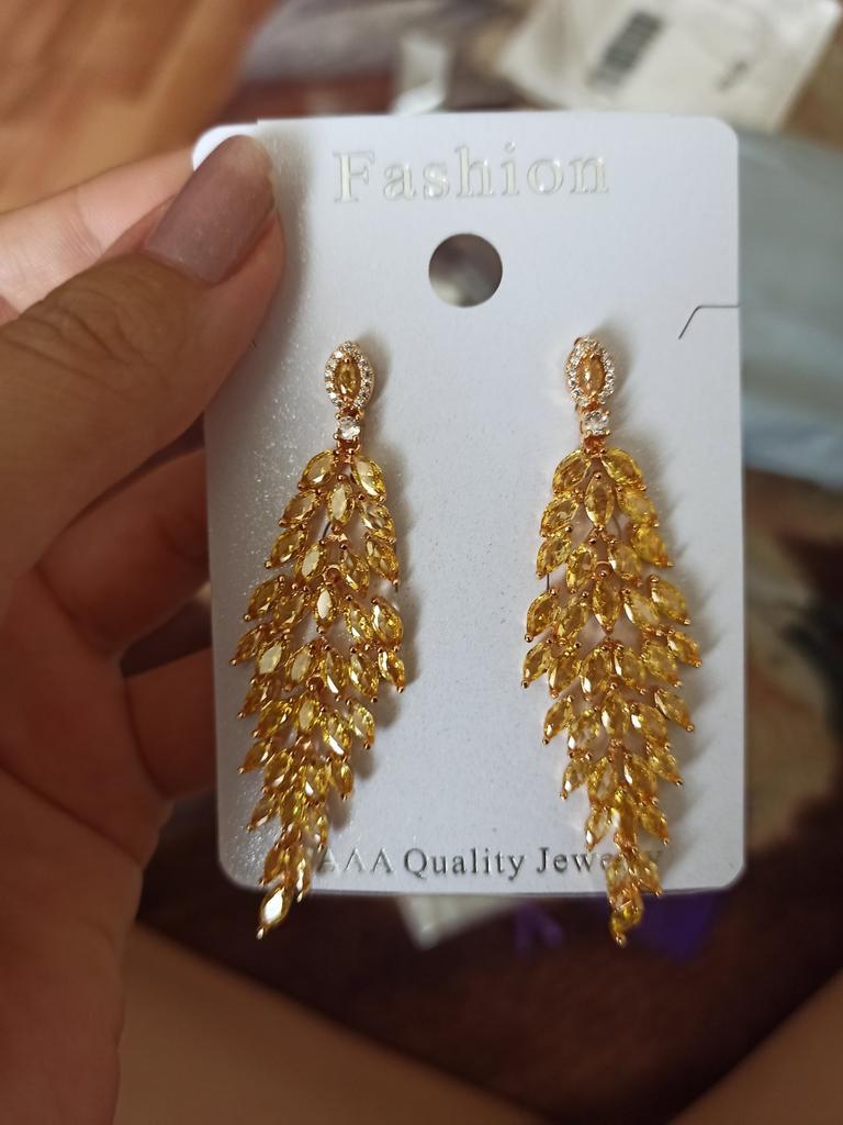 Orecchini pendenti a foglia lunga con zirconi gialli WWJ