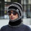 Men's Winter Warm Scarf Knitted Hat Solid Color with Fur Hat