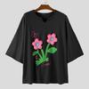 INCERUN Oversized Men Round Neck Short Sleeve 3D Flower Print Stitching Casual Rib T-shirts Tops