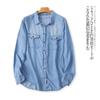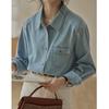 Johnature Vintgage Thin Denim Turn-down Collar Women Shirts Autumn Button Casual Solid Color Female Blouses