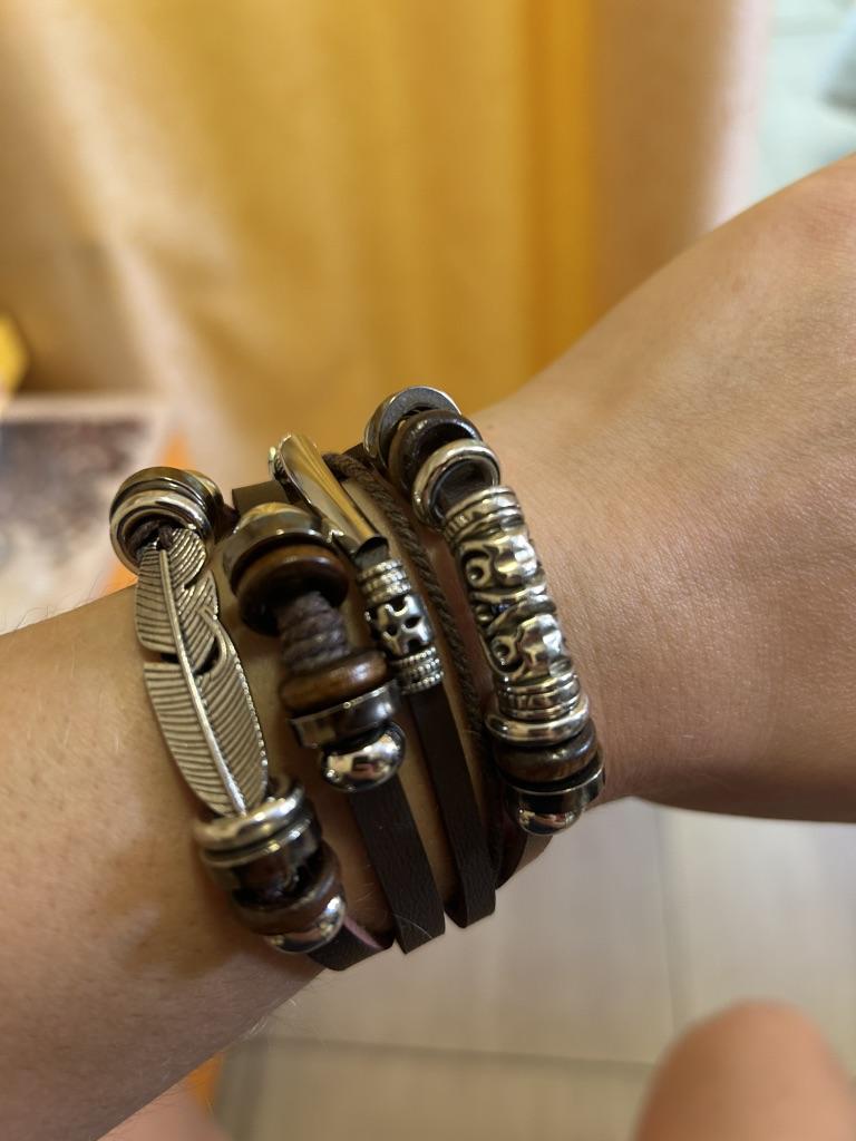 13 სტილის მოდური მრავალშრიანი ღრუ შენადნობის თვალის საჭის ფოთოლი ყავისფერი ტყავის სამაჯური მამაკაცის სამკაულები საჩუქარი