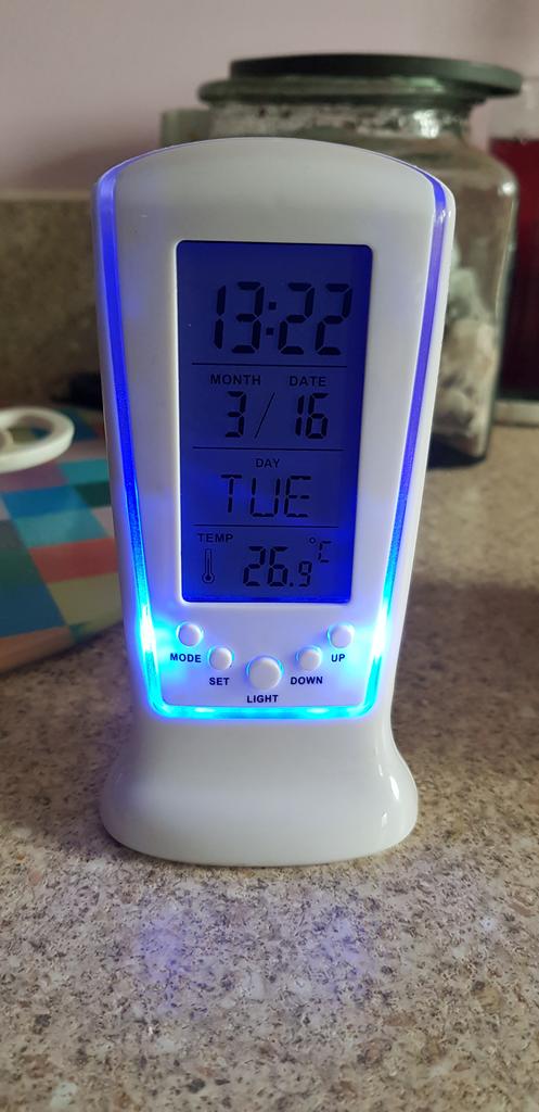 Digitālais modinātājs LED zilā fona apgaismojuma galda modinātājs pie gultas ar atlikšanas termometra kalendāru