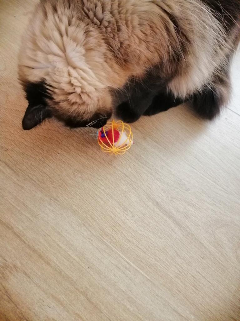 Kattungen er glad 😍 Han plager musa hele tiden. Jeg tok musen ut av ballen fordi den bråket mye. Kattungen er glad og sover ofte med musa i sengen sin. Hunden liker imidlertid ballen med musen i. Jeg tror de kommer til å ha det gøy med det lenge. Jeg anbefaler det til eiere av katter og hunder ☺️