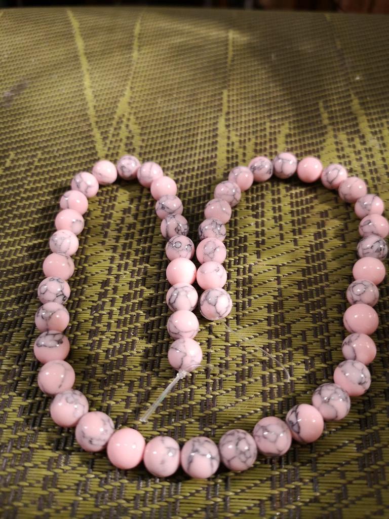 Ca 45 rosa turkise perler med grå marmorering. Du ser veldig vakker ut. 😘🦋
