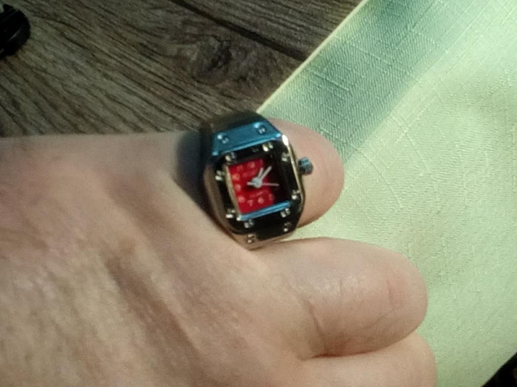 Ringklokke er vakker og nøyaktig. Det fleksible båndet kunne vært litt større. Kan bare sette klokken på lillefingeren min. Men aldri hele dagen. Kutter inn for mye.