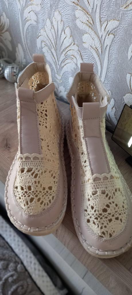 Jeg fikk dame sommerstøvler i beige størrelse 40. De passer til en fotstørrelse på 25 cm De sitter ganske tett. Det er et lite trykk i tåområdet. Jeg håper at når du bruker dem, vil føttene dine føles mer komfortable.