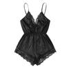 Denne bodyen har bukseseler, dyp V-hals, blondedetaljer, midjedesign i imitert sateng og shorts for en stilig og komfortabel passform.