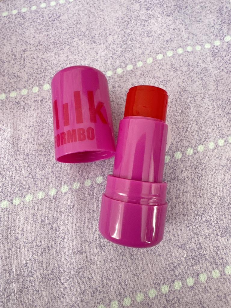 Leppene er rosa, men ikke lyse. Emballasjen er lysere på bildet, produktet er lite, men lukten er søt.