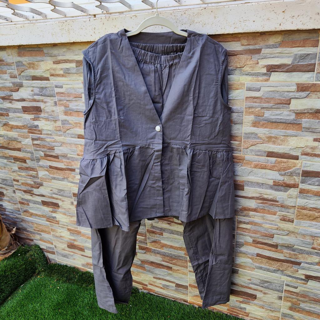 Denne drakten er akkurat det man trenger for sommeren – lett, luftig og ser gjennomført ut uten anstrengelse.. Stoffet føles naturlig takket være bomullen, noe som gjør det veldig behagelig mot kroppen, spesielt på varme dager. Buksenes snitt er løst, sitter godt uten å gnage, og den ermeløse V-halsblusen er flatterende og luftig.. Det jeg likte spesielt var at den ser "striglet" ut, men føles veldig behagelig – passer til en arbeidsdag, ærend i byen eller til og med en avslappet kveld ute. Knappene gir et elegant preg som løfter antrekket.. Hvis du leter etter en behagelig, praktisk og stilren dress – er dette et flott valg. Åh, og også – trenger ikke stryking, som er en enorm bonus.