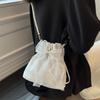 Chic Bowknot Canvas Crossbody Bag with Faux Pearl Chain - Versatile & Stylish Bucket Shoulder Purse for Women