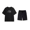 Li Ning Logo Cartoon Pattern Printed Fashion Trendy Versatile Round Neck Pullover Short Sleeve T-Shirt Casual Sports Set AHSUA23-2+YKSV147-2
