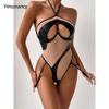 Yimunancy Tassel Lingerie Set Women Halter Cut Out Sexy Erotic Set Red/Black Back Open Brief Kit