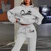 Opplev komfort og stil med dette trendy hettegenser-settet for kvinner, perfekt for høsten. Dette settet har et fasjonabelt trykk med bokstaver og er laget av polyester av høy kvalitet, noe som sikrer holdbarhet og en myk følelse.. De lange ermene gir varme på kjøligere dager, noe som gjør den til et ideelt valg for uformelle utflukter eller avslapning hjemme.. Med sitt elegante og moderne utseende er dette sweatshirtsettet et must-have tillegg til garderoben din.