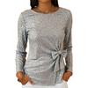 Utsøkt materialblanding for ultimat komfort: Denne toppen er laget av førsteklasses polyester tilsatt fine metalltråder, og tilbyr en subtil glans som fanger lyset vakkert.. Det myke, hudvennlige stoffet sikrer komfort hele dagen samtidig som det opprettholder en sofistikert tekstur, noe som gjør det perfekt for både uformelle og formelle anledninger.