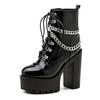 Fashion Autumn Winter Waterproof Women Leather Boots Punk Style Chain Design Female High Top Motorycle Boots Thick Soled Women Shoes