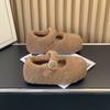 Cute retro fur integrated fluffy beanie shoes women wear warm and velvet flat Mary Jane cotton slippers in winter
