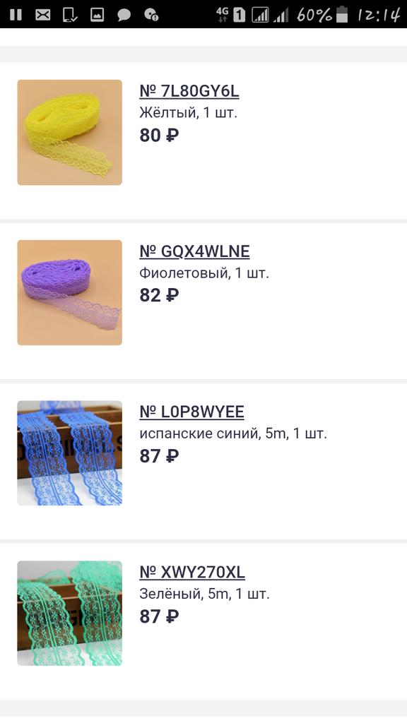 Вот и пришёл мой заказик! Заказывала желтое кружево. Не эластичное. Очень плотное. Не расползается. Качество в целом очень даже. По цвету : яркий жёлтый цвет, как мне и надо было. Длинна отреза 9.25м , ширина 3см. Я заказом довольна. Буду брать ещё. Кстати... У этого же продавца брала эластичное кружево. Так же советую. Кому интересно, можете посмотреть в профиле. И да, запаха вообще нет!