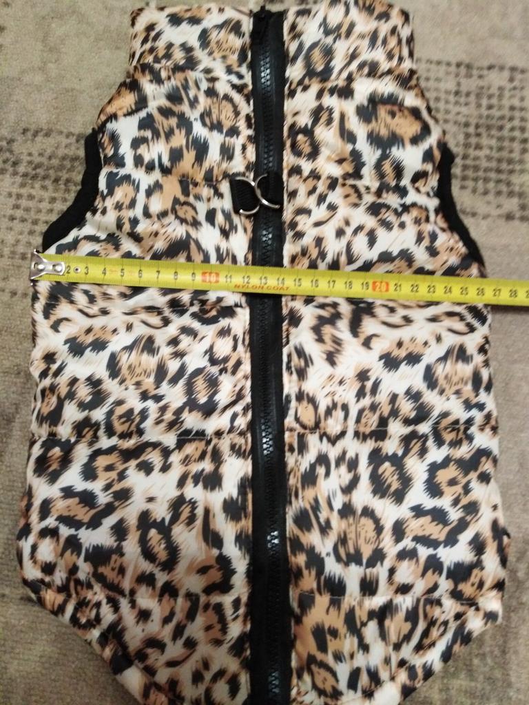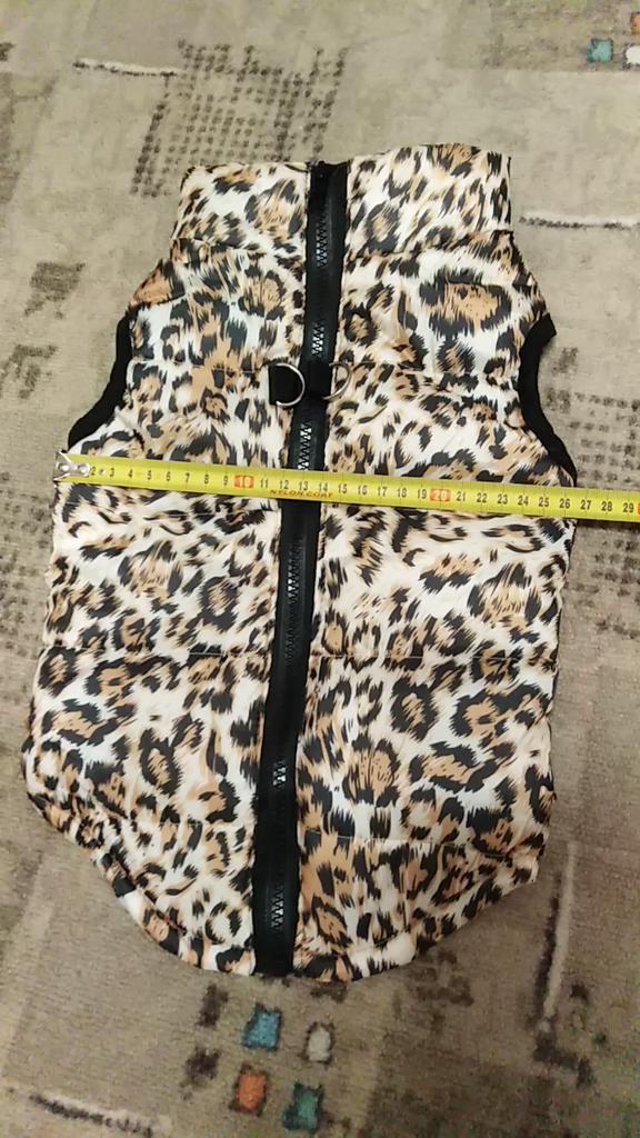 Товар пришёл хорошо упакован. Но размер не соответствует. Очень большая. Моя собака утонула в ней. Хотя я заказала по отзывам и по описанию. В описании написано, что длина спинки 30см, а померяла 32см. У моей собаки длина спины 28-29см. Шея тоже очень большая. Этот размер подходит больше для французского бульдога или дрт. У меня цвергпинчер. Очень жаль, что не по размеру. А так жилетка качественно сшита. Цвет очень понравился.