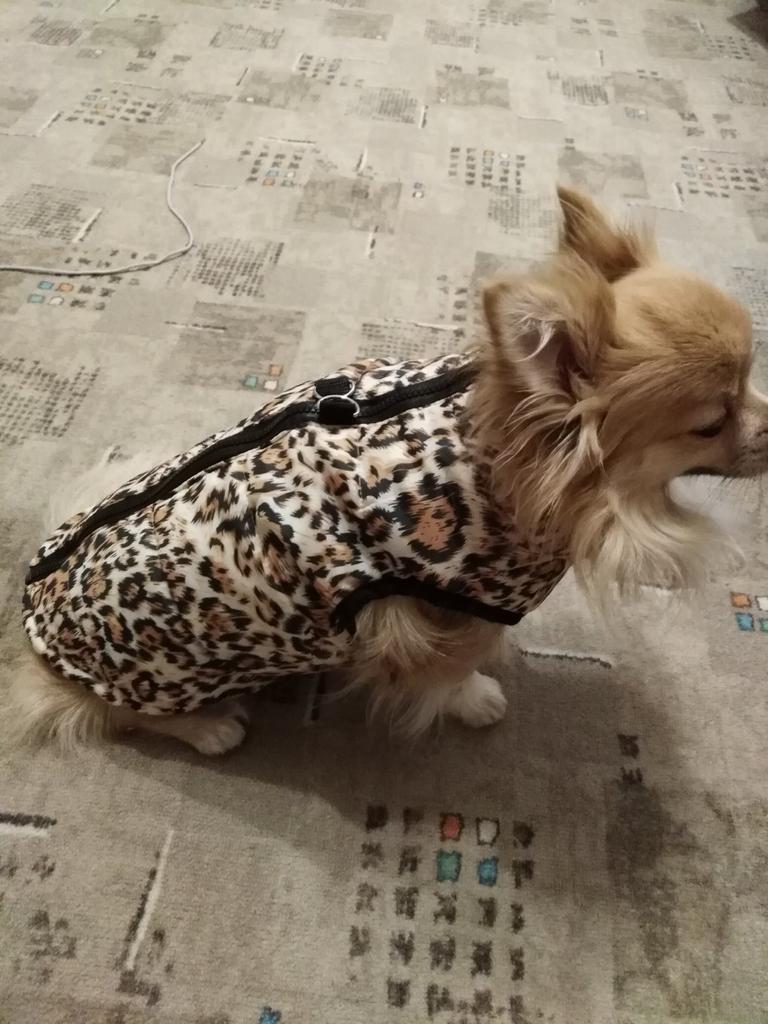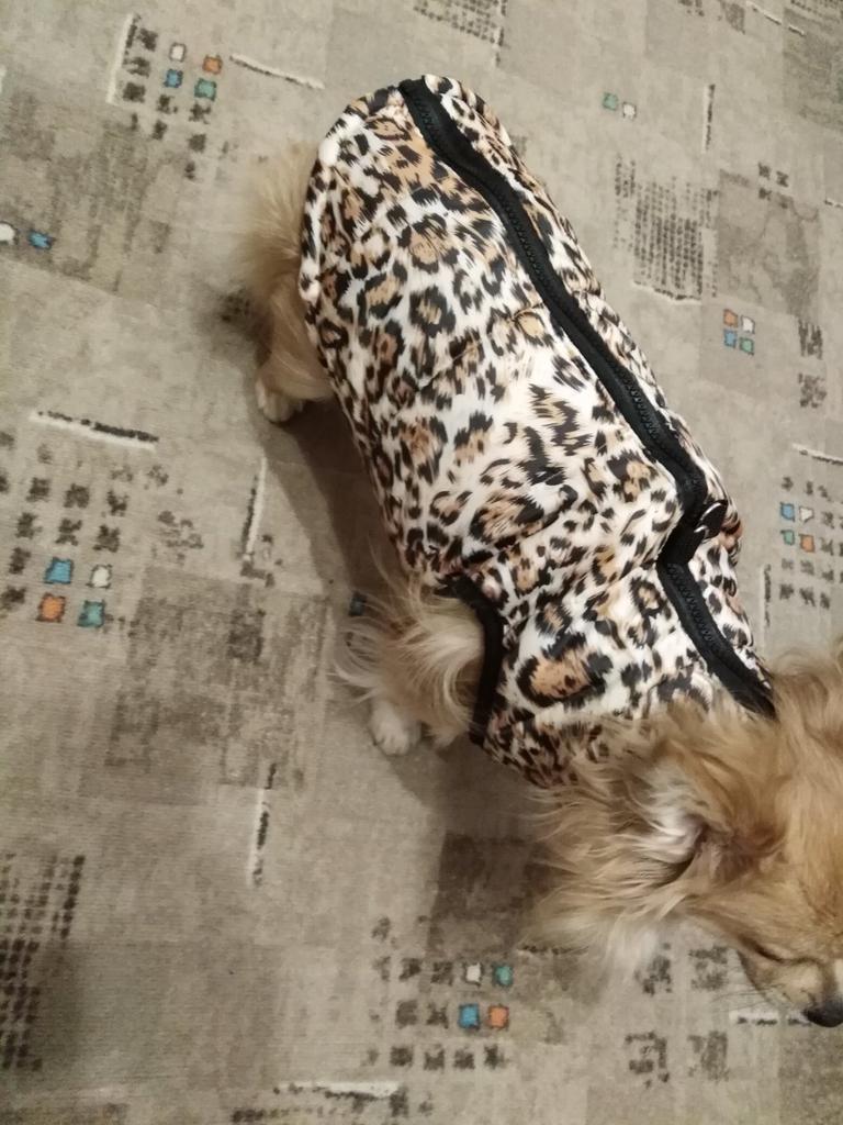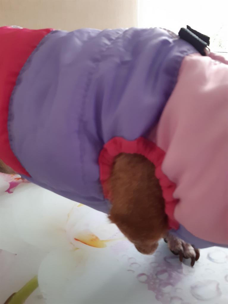 Лёгкая, красивая, но огромная пройма для лап. Может, надо было заказать меньший размер? 🤔 Это "М"-ка, а "S"-ка, думаю, будет мала. Может ушью в боках... Диаметр проймы, аж 16см, а окружность -31см. Это на крупные лапки🙉. Моя Бусинка "утонула" в ней! 🤣 Очень жаль, что не указывают размеры в сантиметрах😒 Нашла выход из положения! Вставила круглую резиночку в пройму. Результат "налицо"! Последние 2 фото и видео на прогулке😉