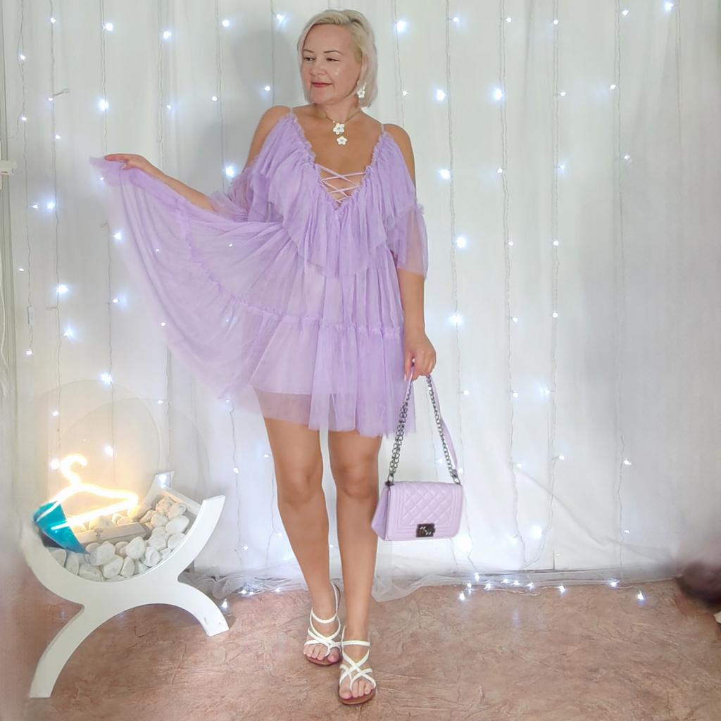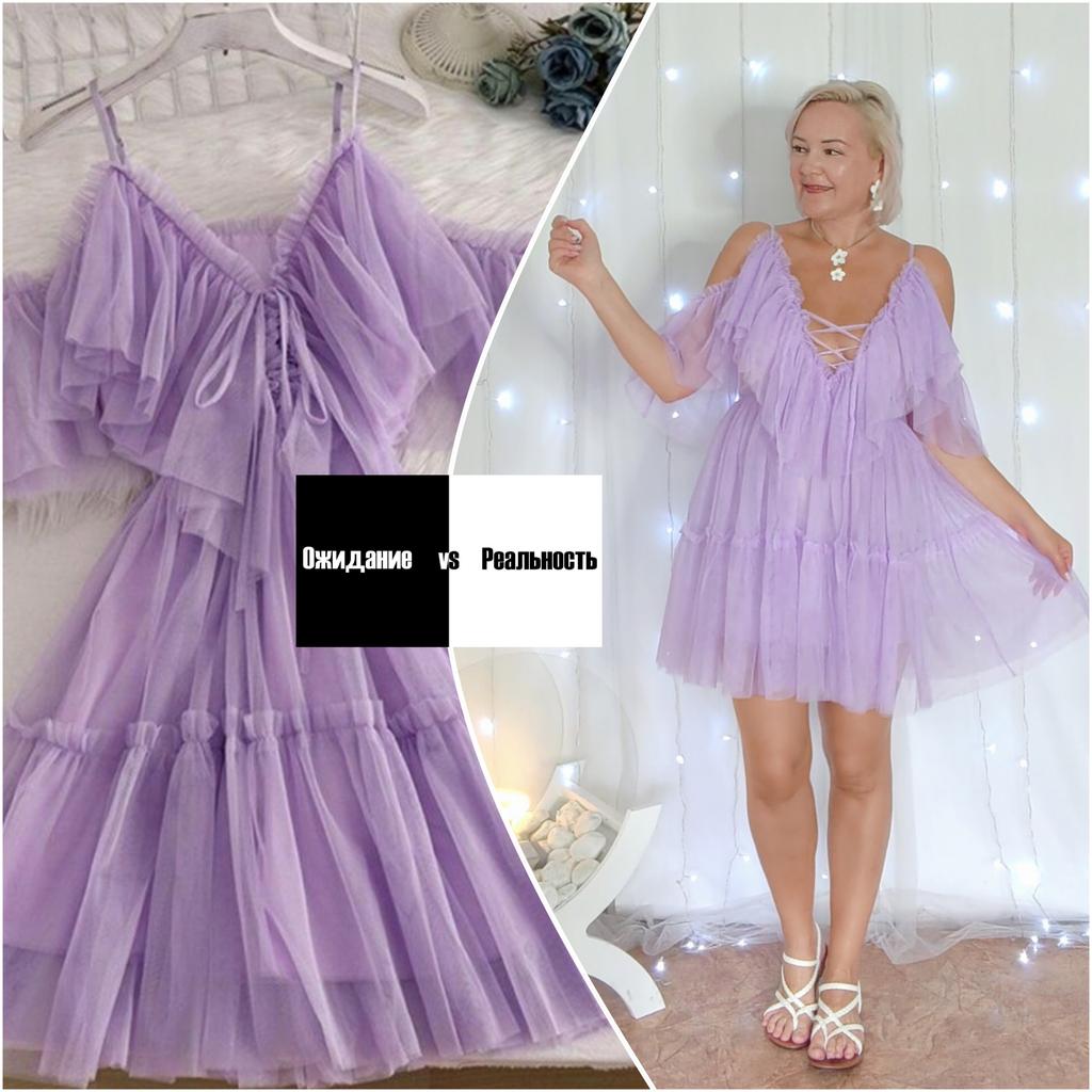 Нежная фиалка. Я купила это платье для себя, но надев его поняла, что носить будет Крис (дочь) 😄 Смотрим на эту прелесть! Ткань : Сшито платье из двух видов ткани: Основная ткань нежная сетка, не колется, нежная к телу - воздушная. Внутри подкладка, ткань не тянется, хоть и синтетика, но приятная к коже. Дизайн: Платье на брительках они регулируются по высоте. Молний и замочков тут нет. Спереди красивая шнуровка, её можно затянуть, а можно создать лёгкий сексуальный эффект. На талии вшита резинка. Размер: На мне единый размер. Мои параметры : рост 172 см 98/76/106 см Детали: Длина 99 см ОГ до 98 см (мах) ОТ 60 до 88 см Резюмирую: Очень симпатичное платье сарафан в красивом лиловом цвете. Очень рекомендую 👌 Я не прощаюсь, M_K #фиалка