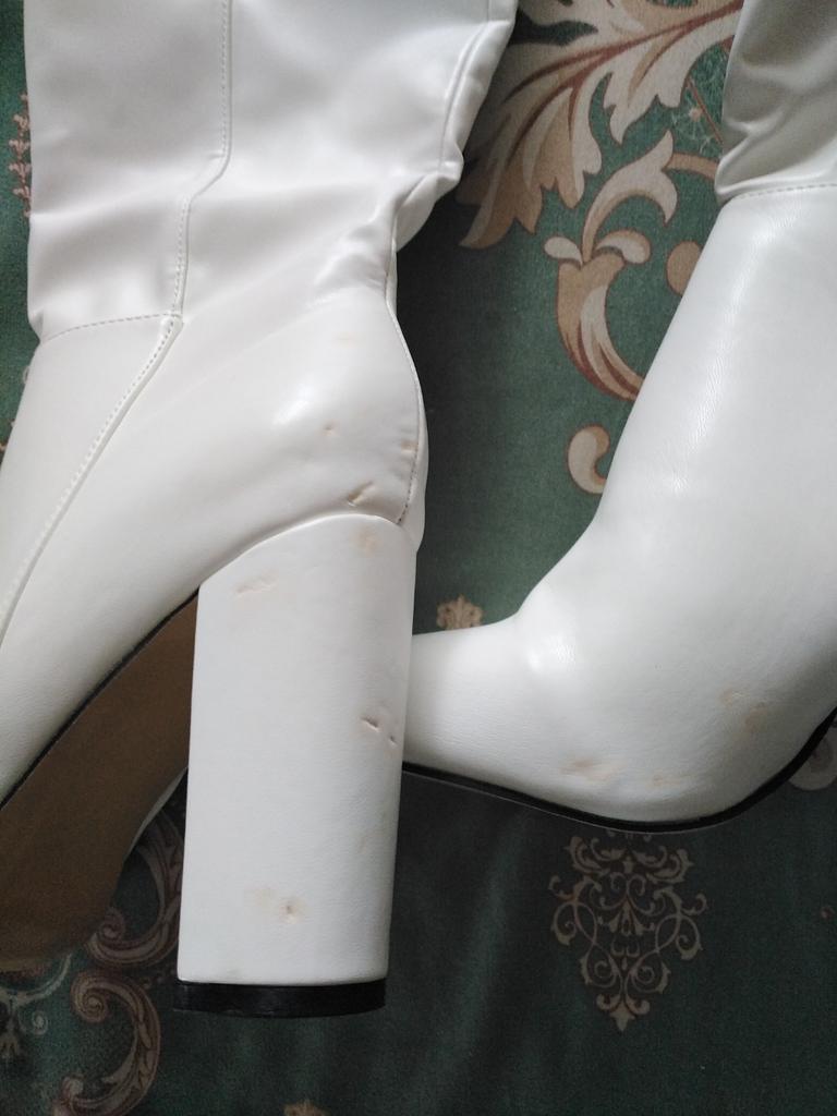 Доброго дня всем. Ну у меня нет, ооочень расстроилась, когда распаковала долгожданные сапоги. Ужас.... Клеенка,это ладно, но все проколоты, помятые. Сразу все заметили. Ещё голенище сзади склеено, либо так сделано... Пыталась аккуратно разгладить паром. Ничего не поправимо. Просто либо верните деньги, либо вышлите похожие. Большая просьба-если шлете такой нежный товар, упаковывайте по надёжнее. Почему же так пробита вся упаковка?