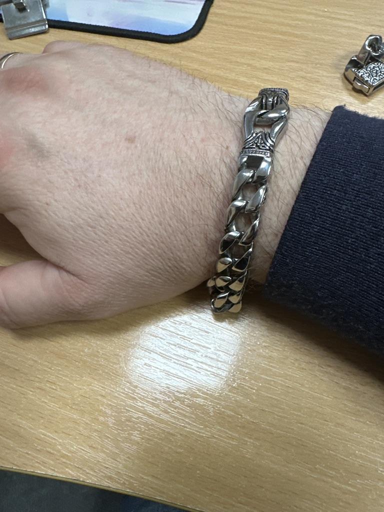 Браслет класный, к покупке рекомендую, смотрится ОХУ.... НО, такой видный, массивный, в общем на мужскую руку, китайцам респект!!! Серебро-25сантиметров.