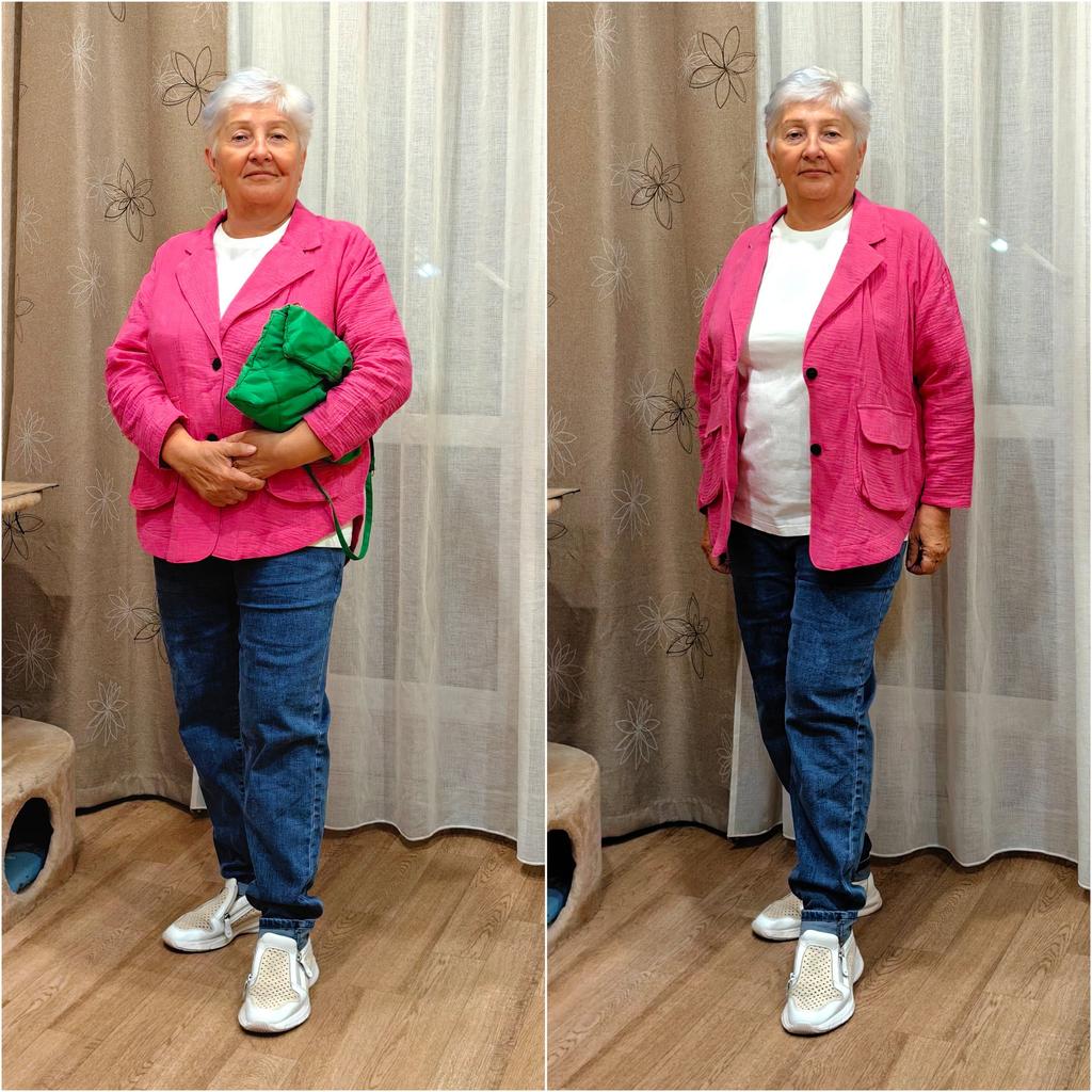 Жакет цвет фуксия 💗💕 Всем солнечный приветик 👋😉 Яркий, лёгкий и стильный 😍 Носить можно в любое время года Он идёт по типу рубашки, но силуэт жакета Летом можно накинуть на топ, футболку, майку, платье А в холодный сезон на рубашку, лонг, бадлон, водолазку - тепло, стильно, т.к. создана многослойность и не жарко 😉 Единый размер На мне жакет сел очень свободно Обязательно померяю на мамуле, когда она вернётся из отпуска и дополню обзор 🫶 Мои параметры: 🎗 рост 160см 🎗 вес 54кг 🎗 длина плеч 40см 🎗 объём груди 93см (75D) 🎗 объём талии 63см 🎗 объём бёдер 93см. Качество: 💗 у продавца указано как 100% хлопок 💕 ткань жатая, мягкая, не тянется и не светит 💗 английский воротник 💕 однобортный, застёгивается на одну сторону и на 2 пластиковые пуговицы чёрного цвета 💗 рукава, думаю, что должны быть 3/4, но на мой рост почти полноценной 💕 спереди 2 глубоких, накладных кармана, которые закрываются клапанами 💗 рукава широкие 💕 швы ровные 💗 качество отличное. Точные замеры жакета: 📏 ОГ - 130см 📏 ОТ - 124см 📏 объём низа жакета - 126см 📏 длина жакета от плеча и до кармана - 39см 📏 вся длина жакета от плеча - 70см 📏 длина плеч - 59см 📏 длина рукава от воротника - 69см 📏 длина рукава от плечевого шва - 46см 📏 объём проймы - 56см. 📏 объём манжеты - 26см. Я жакетом довольна очень-очень и рекомендую его всеми ручками 🤗💞 Спасибо, продавцу и Джуму 😘 Чмок-чмок-чмок, всех кто со мной на Джуме 😘 Желаю удачных покупок и весны в душе ❤️ До скорого 🙌😊 Песня во втором видео: Амир Назари feat. Элли Джонсон «Mishale» 🎶💃🎶